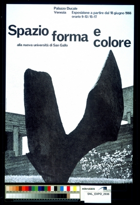 | 4 | 1965 | Venedig | Gruppenausstellung | Spazio, Forme e Colore all'Università di San Gallo | Dogenpalast | Ausstellungsplakat |